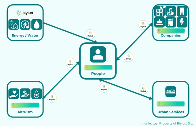 A continuación se describe el funcionamiento técnico del sistema Biyiud. Si deseas conocer nuestra propuesta comercial, te invitamos visitar Biyiud para personas, Biyiud para empresas y Biyiud para ciudades.